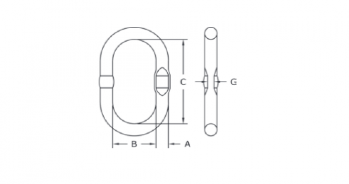 - Každý hlavný spojovací článok je označený kódom identifikácie výrobku (PIC) pre sledovateľnosť materiálu, stupňom, označením CE, veľkosťou reťaze a znakom „CG“ (Crosby Group).